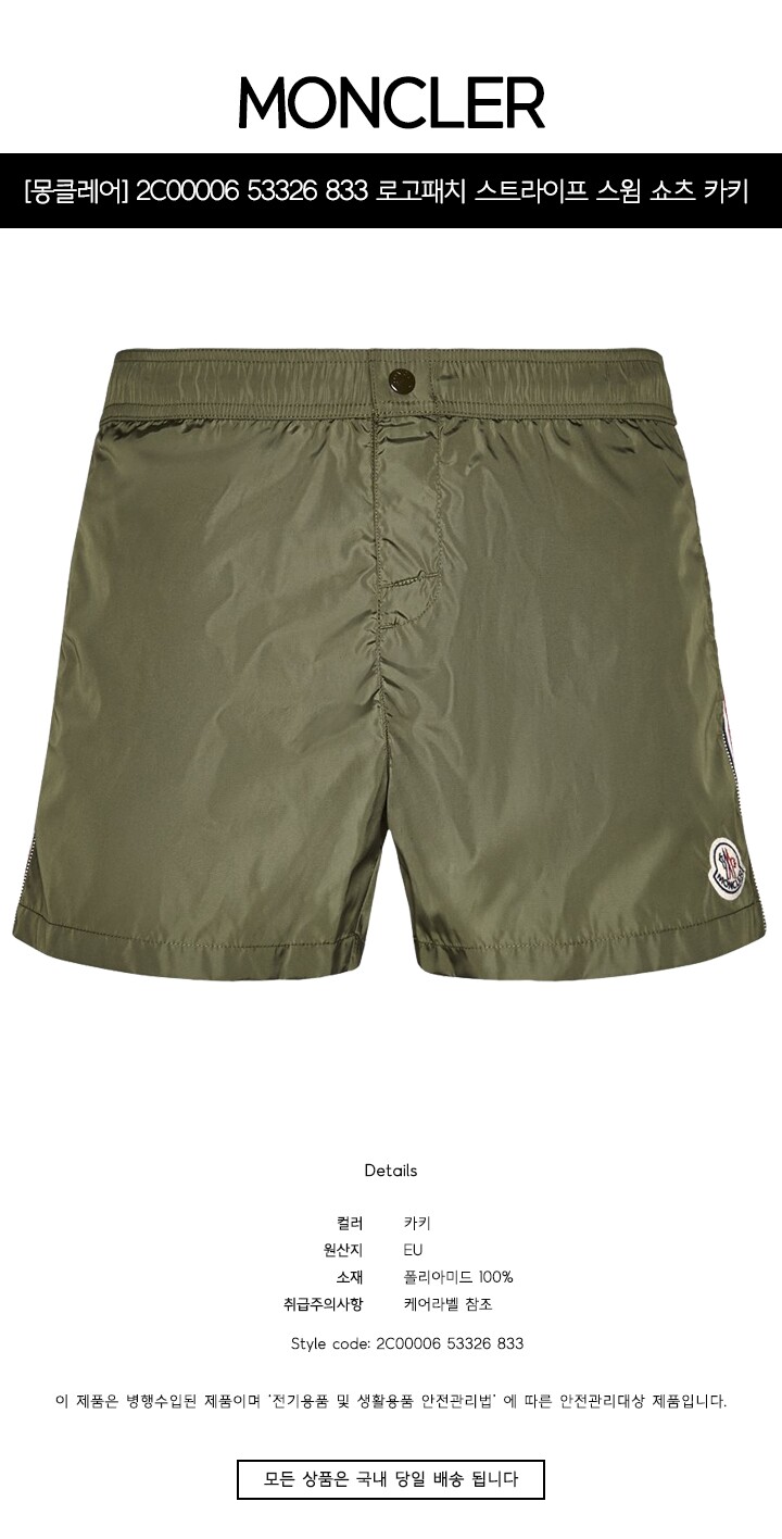 - #리본즈코리아 #2C0000653326833 #[명품] #2C00006 #53326 #833 #로고패치 #스트라이프 #스윔 #쇼츠 #카키 #남성 #팬츠 #/ #의류 #하의 #반바지