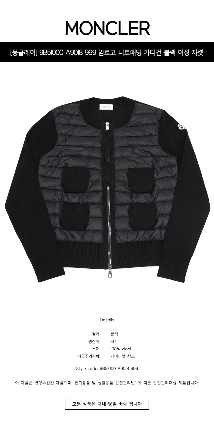 [명품] 9B51000 A9018 999 암로고 니트패딩 가디건 블랙 여성 자켓 /