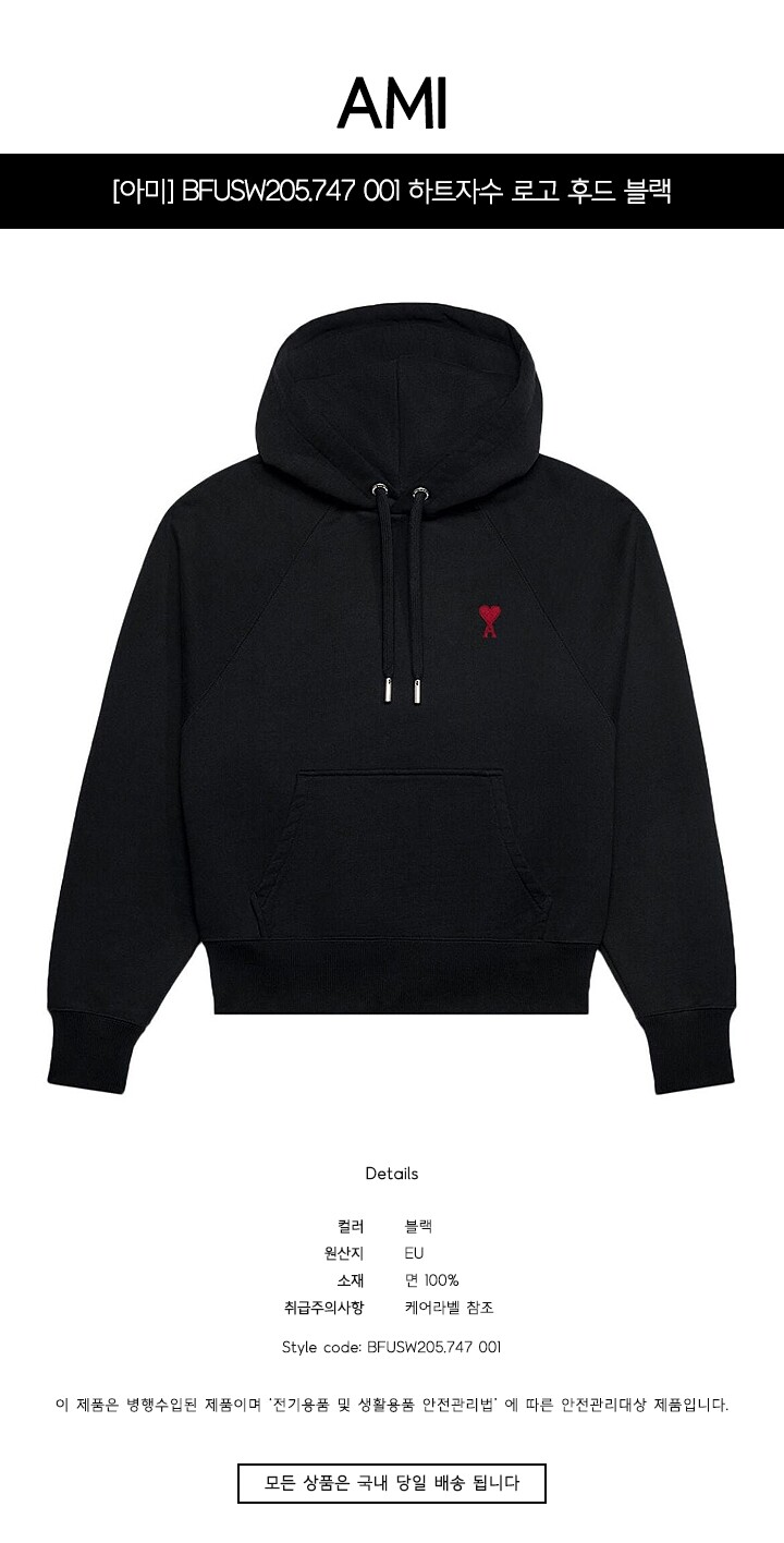 [명품] BFUSW205.747 001 하트자수 로고 후드 블랙 남성 후드 /
