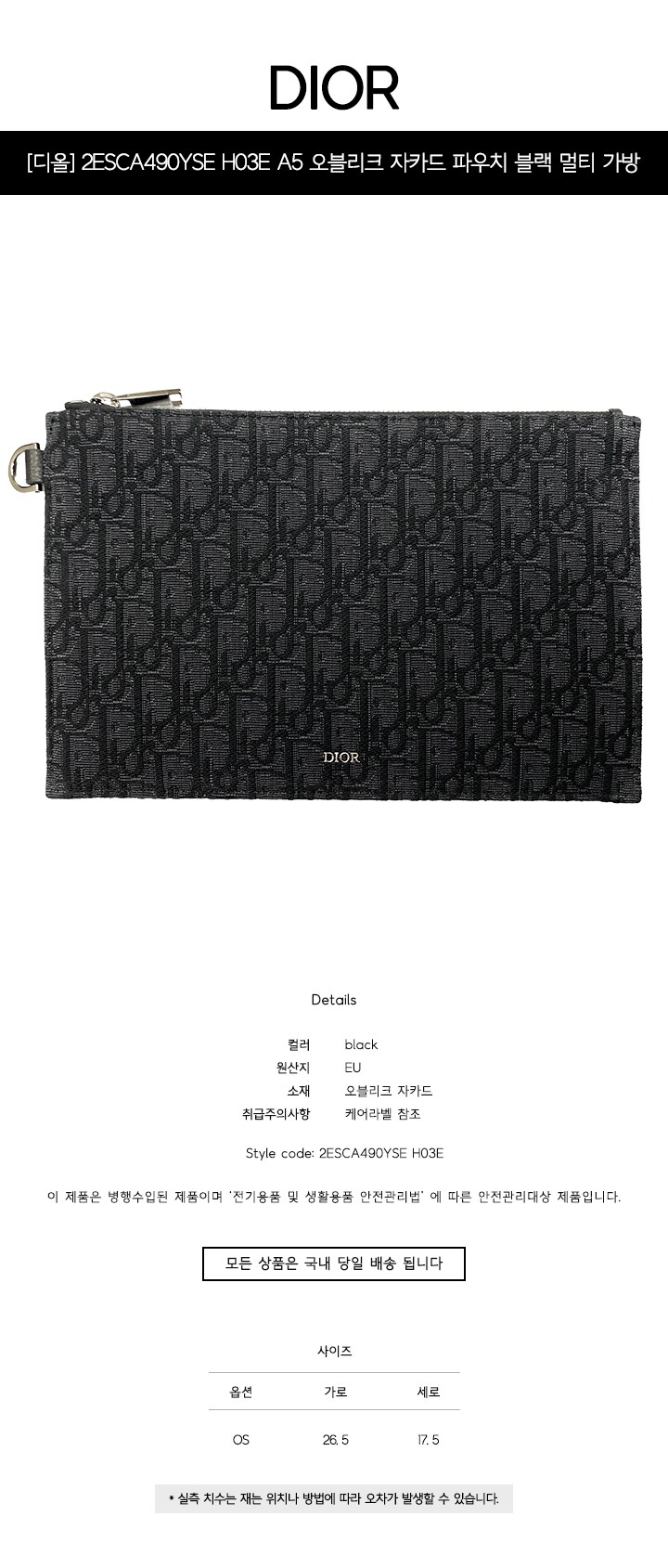 - #리본즈코리아 #2ESCA490YSEH03E #[명품] #2ESCA490YSE #H03E #A5 #오블리크 #자카드 #파우치 #블랙 #멀티 #가방 #/ #남성 #가방/핸드백 #클러치/파우치 #클러치