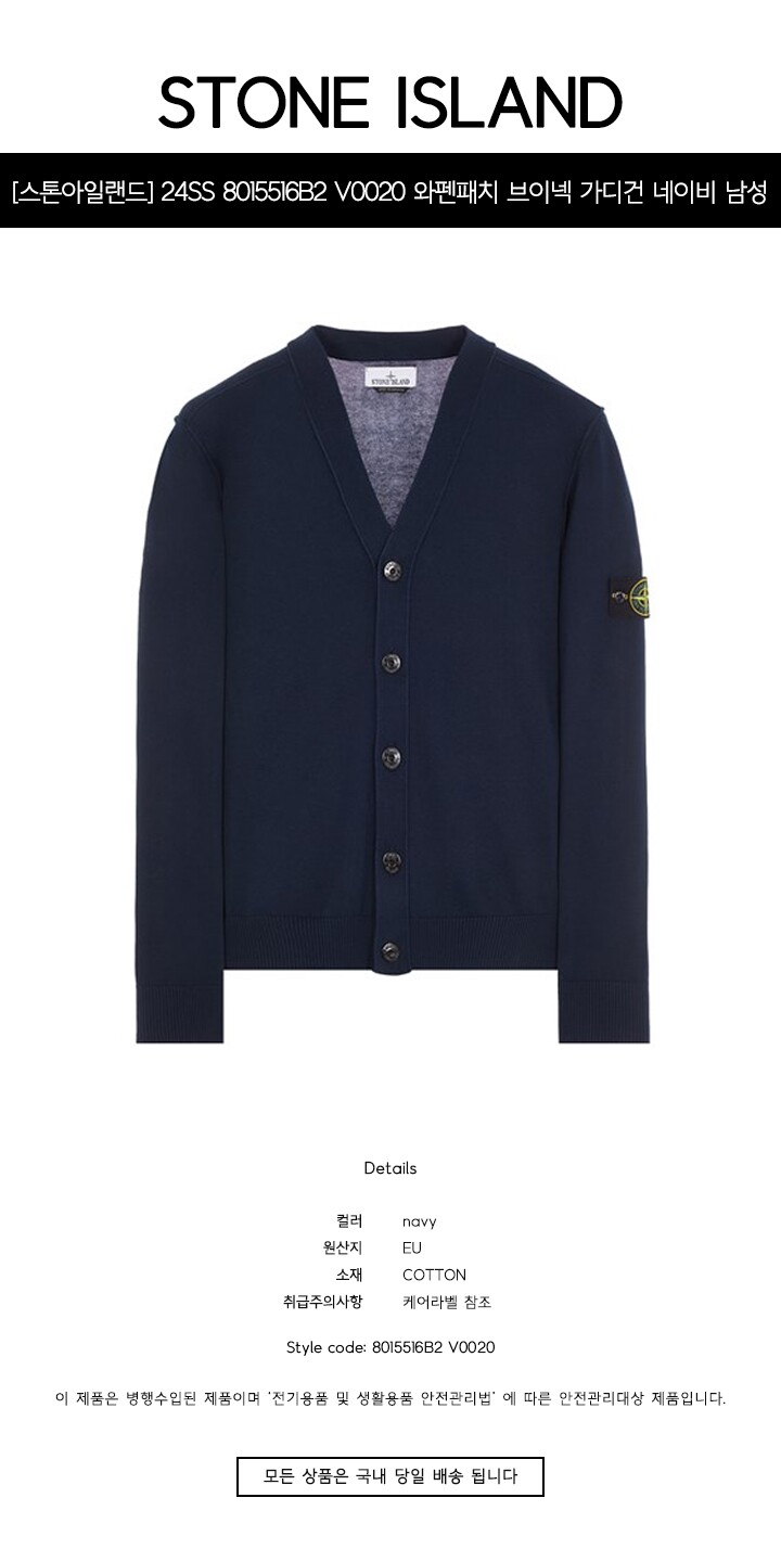 #리본즈코리아 #8015516B2V0020 #[명품] #24SS #8015516B2 #V0020 #와펜패치 #브이넥 #가디건 #블랙 #남성 #자켓 #/ #의류 #니트/가디건