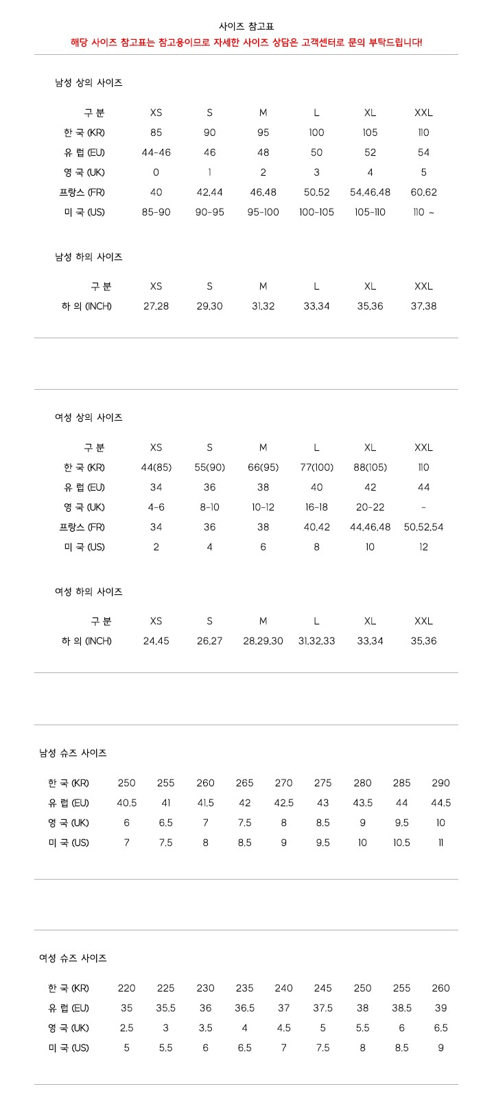 | 9. A/S 책임자와 전화번호 | 마리오 아울렛 고객센터에 문의 바랍니다 |