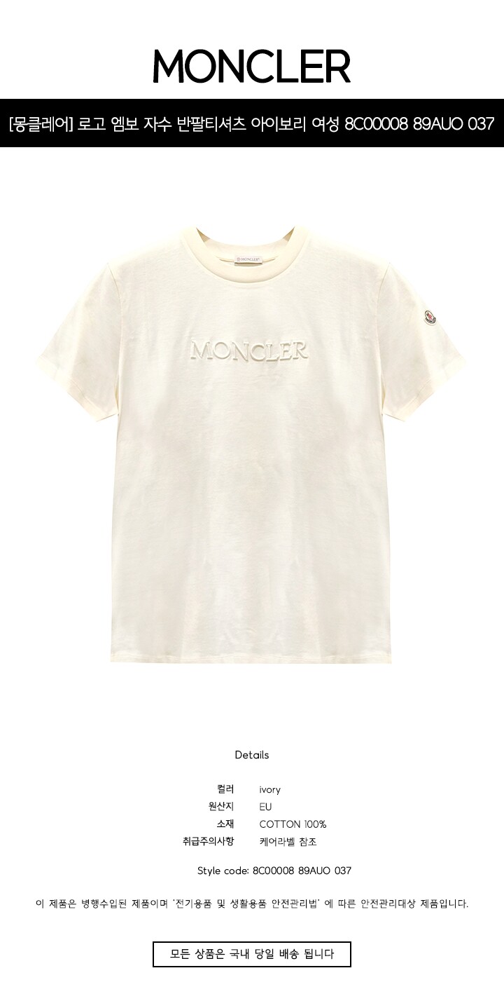 #리본즈코리아 #8C0000889AUO037 #[명품] #로고 #엠보 #자수 #반팔티셔츠 #아이보리 #여성 #티셔츠 #8C00008 #89AUO #037 #/ #TLC #의류 #상의