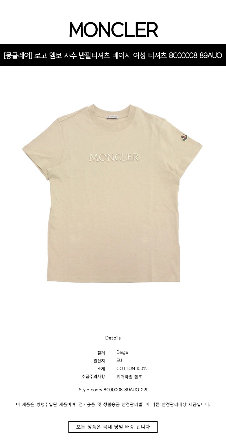 - #리본즈코리아 #8C0000889AUO221 #[명품] #로고 #엠보 #자수 #반팔티셔츠 #베이지 #여성 #티셔츠 #8C00008 #89AUO #221 #/ #TLC #의류 #상의