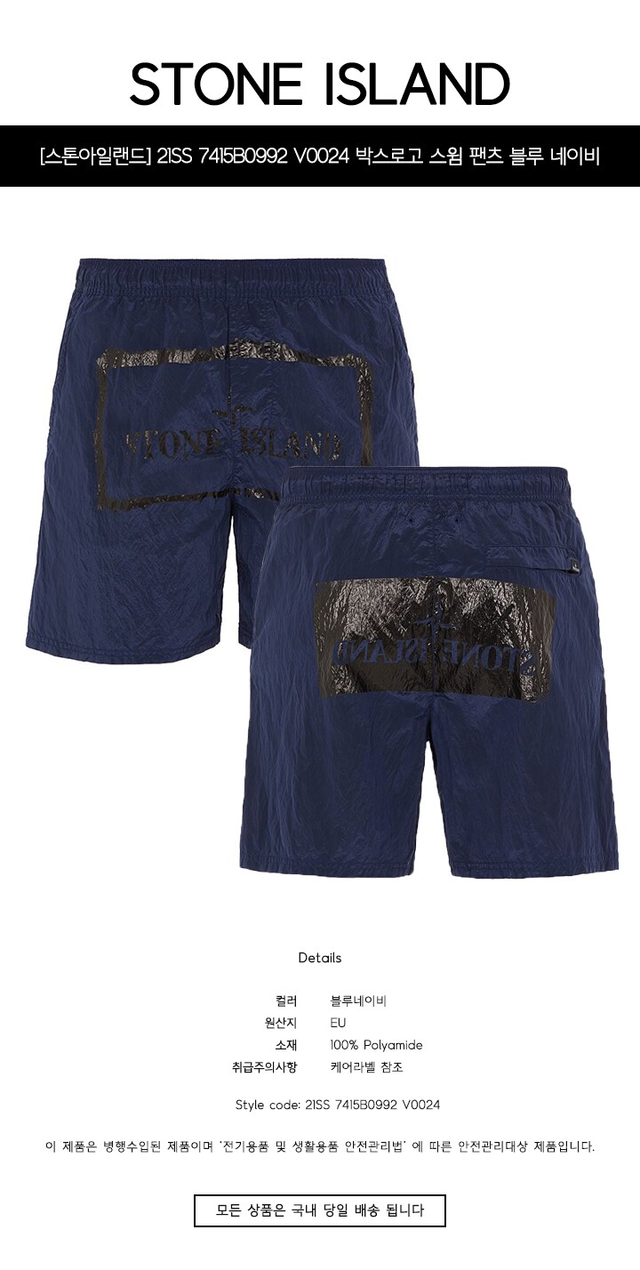 - #리본즈코리아 #21SS7415B0992V0024 #[명품] #21SS #7415B0992 #V0024 #박스로고 #스윔 #팬츠 #블루 #네이비 #남성 #/ #의류 #하의 #반바지