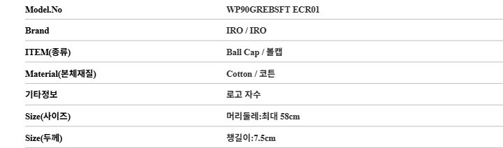 IRO WP90GREBSFT ECR01 GREB 로고 자수 볼캡