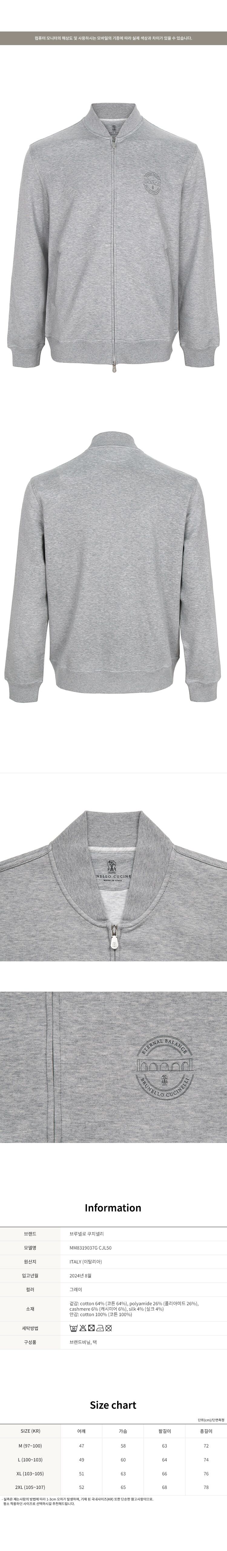 [명품] 브루넬로쿠치넬리 캐시미어 실크 집업 자켓 MM8319037G CJL50