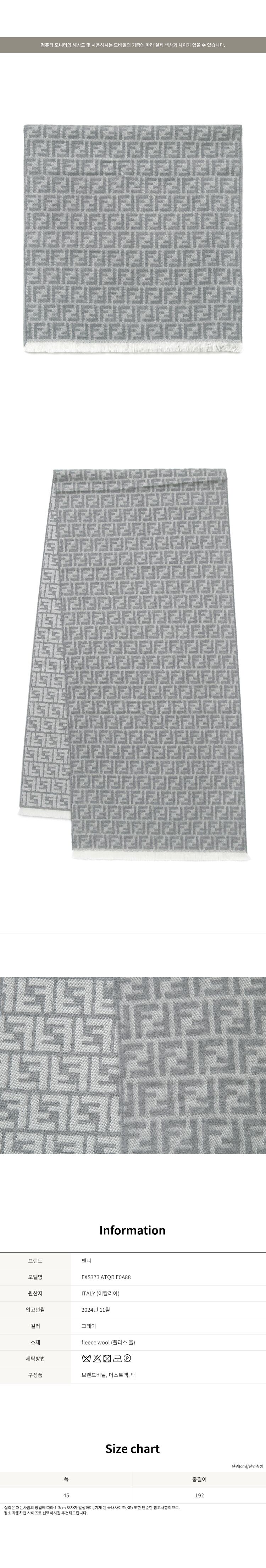 [명품] 펜디 그레이 FF 울 머플러 FXS373 ATQB F0A88