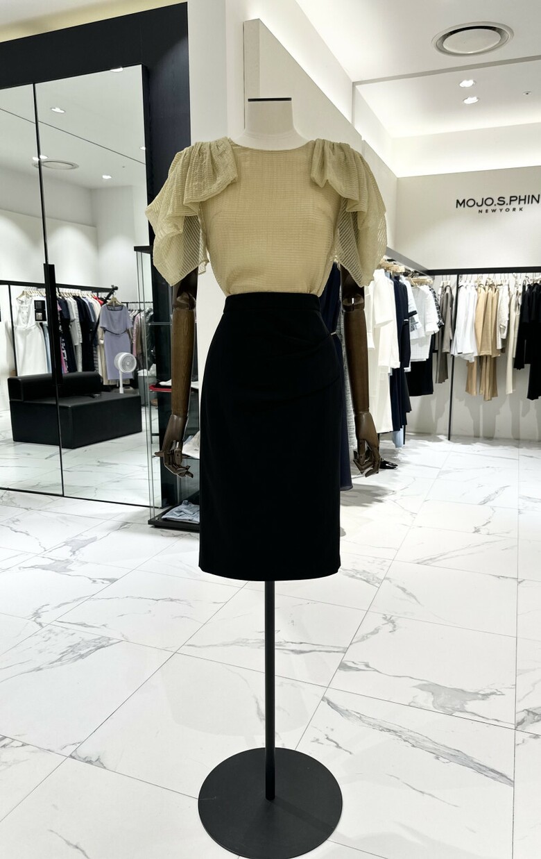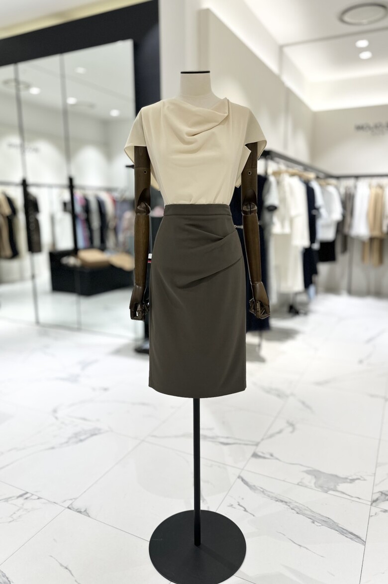 셔링 포인트가 우아하고 세련된 느낌을 주는 스커트입니다. H라인의 깔끔한 디자인으로 정장 느낌을 연출해 주며 다양한 상의와 쉽게 매치할 수 있습니다.