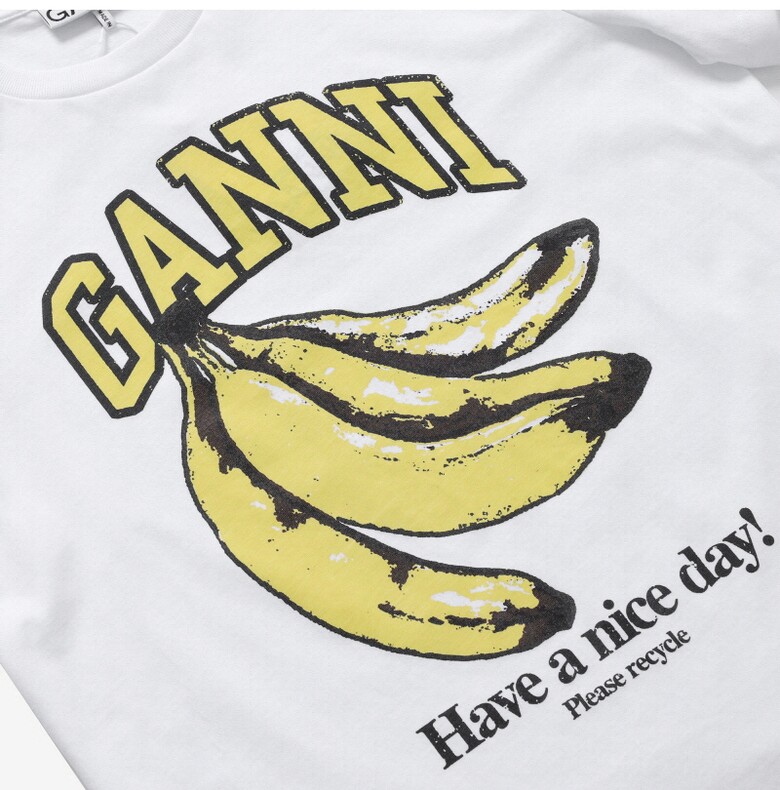 [명품] GANNI T3861 151 바나나 로고 프린트 여성 반팔티
