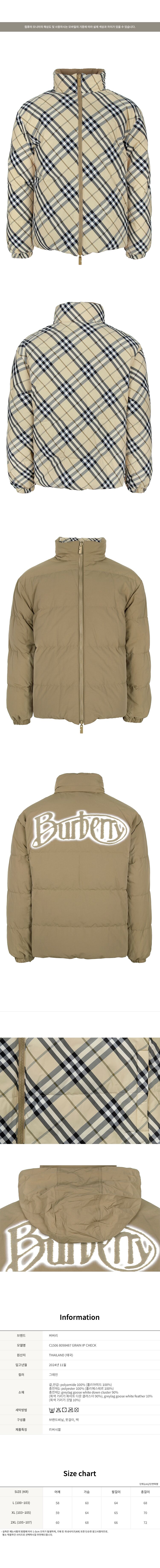 [명품] 버버리 그레인 체크 리버시블 구스 다운 자켓 8098487 GRAIN