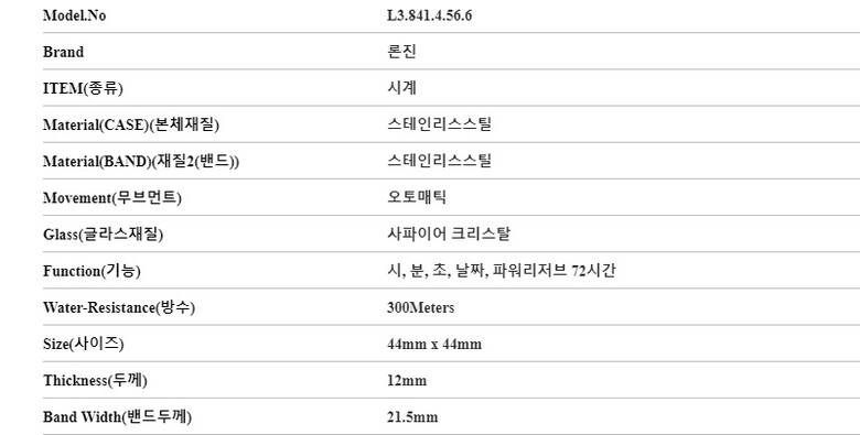 [명품] 론진 L3.841.4.56.6 하이드로콘퀘스트 남성 메탈시계