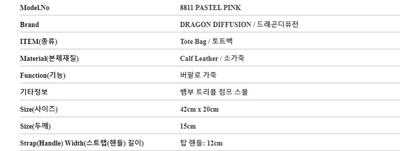 [명품] 드래곤디퓨전 8811 PASTEL PINK 뱀부 트리플 점프 스몰 토트백
