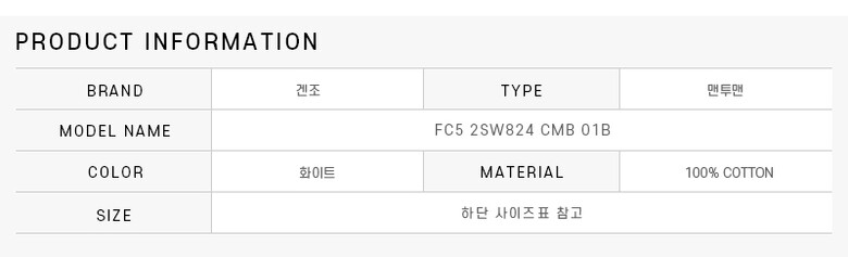 | 1. 제품 소재 (섬유의 조성 또는 혼용률을 백분율로 표시, 기능성인 경우 성적서 또는 허가서) | 상세페이지 참조 |
