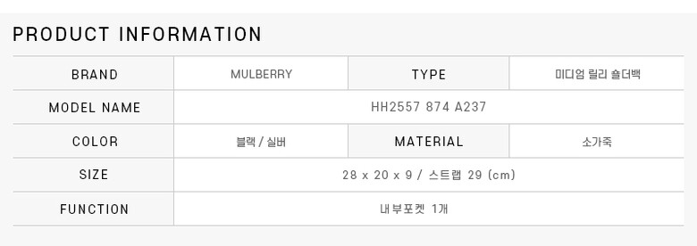 #리본즈코리아 #HH2557874A237 #[명품] #멀버리 #HH2557 #874 #A237 #릴리 #그레인 #미디움 #체인 #크로스백 #여성 #가방/핸드백 #크로스/메신저백
