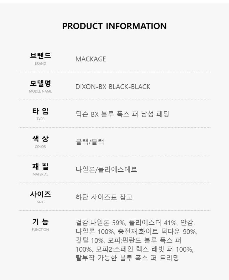 [명품] 맥케이지 DIXON BX BLACK BLACK 딕슨 BX 블루 폭스 퍼 남성 패딩