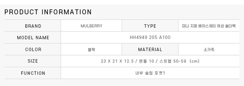 [명품] 멀버리 HH4949 205 A100 베이스워터 그레인 지퍼 미니 탑 핸들 토트백