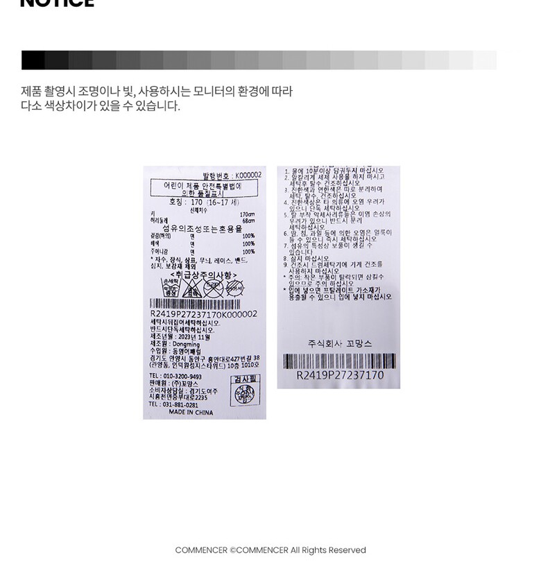 상품불량에 의한 반품, A/S, 품질보증 및 피해보상 등에 관한 사항은 소비자 분쟁해결기준(공정거래위원회 고시) 구매자가 미성년자인 경우에는 상품 구입시 법정대리인이 동의하지 아니하면 미성년자 본인 또는 법정대리인이 구매취소 할 수 있습니다. |