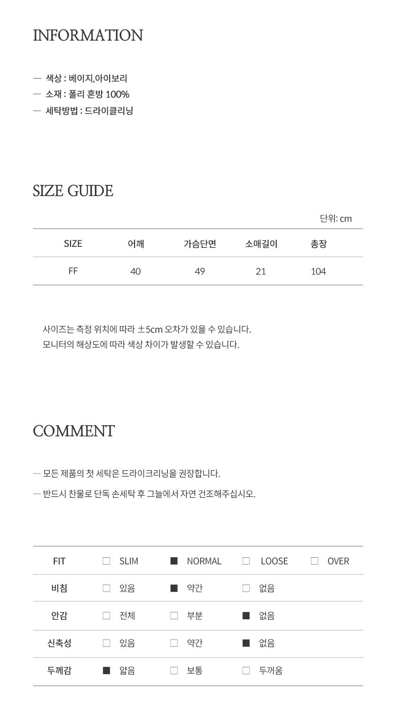 | 6. 세탁방법 및 취급시 주의사항 | 상세페이지 참조 |