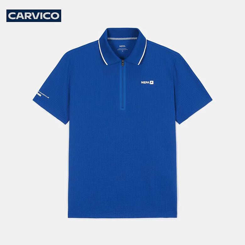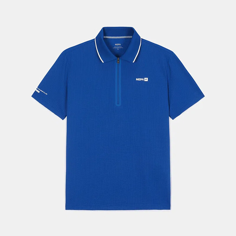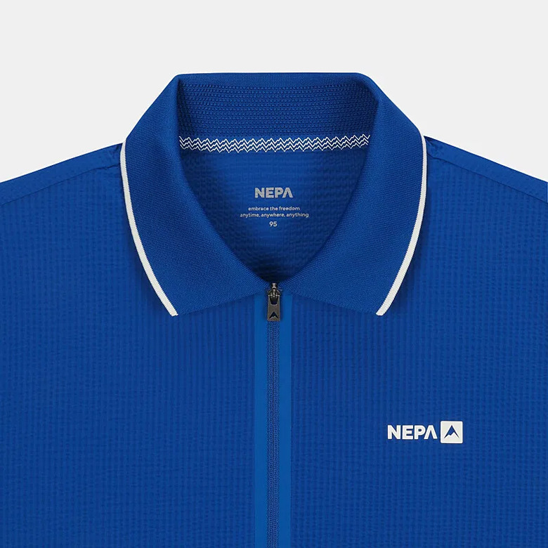 - 집업 형태의 폴로 형태와 카라 팁 배색 디자인으로 퍼포먼스한 무드 강조