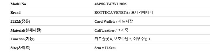 [명품] 보테가베네타 464902 V47W1 2006 464902 V4651 2006 인트레치아토 카드지갑