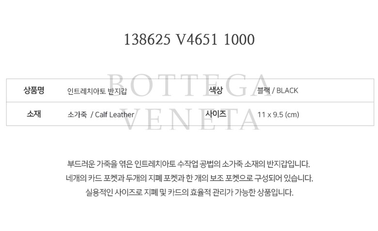 [명품] 보테가베네타 138625 V4651 1000 인트레치아토 뷰 포켓 반지갑