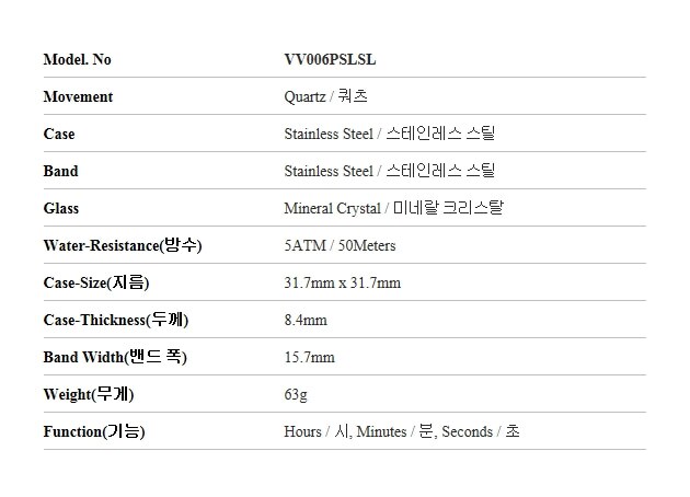 | 7-2. 시계 - 기능, 방수 등 | 상세페이지 참조 |