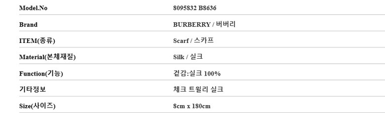 [명품] 버버리 8095832 B8636 체크 스키니 실크 스카프