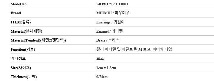 #리본즈코리아 #5JO9112F6TF0011 #[명품] #미우미우 #5JO911 #2F6T #F0011 #로고 #에나멜 #귀걸이 #여성 #시계/액세서리 #귀걸이/피어싱