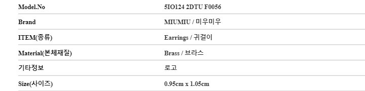 [명품] 미우미우 5IO124 2DTU F0056 로고 귀걸이