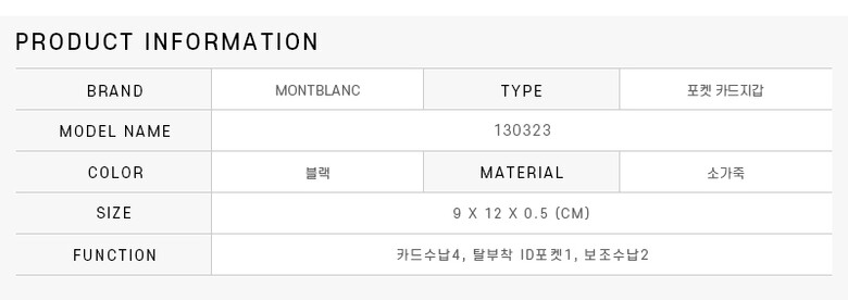 [명품] 몽블랑 ID 포켓 카드지갑 블랙 130323