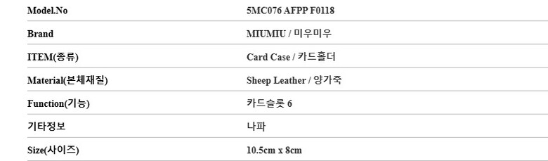 - #리본즈코리아 #5MC076AFPPF0118 #[명품] #미우미우 #5MC076 #AFPP #F0118 #마테라쎄 #나파 #카드지갑 #여성 #지갑 #카드/명함지갑 #카드지갑홀더