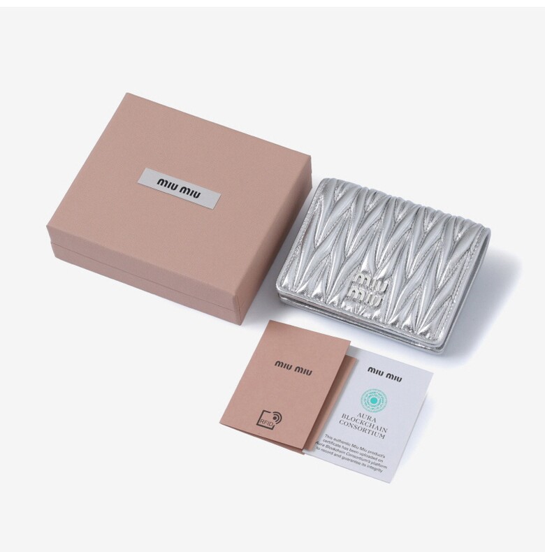 [명품] 미우미우 마테라쎄 나파 반지갑 실버 5MV204 AFPP F0118