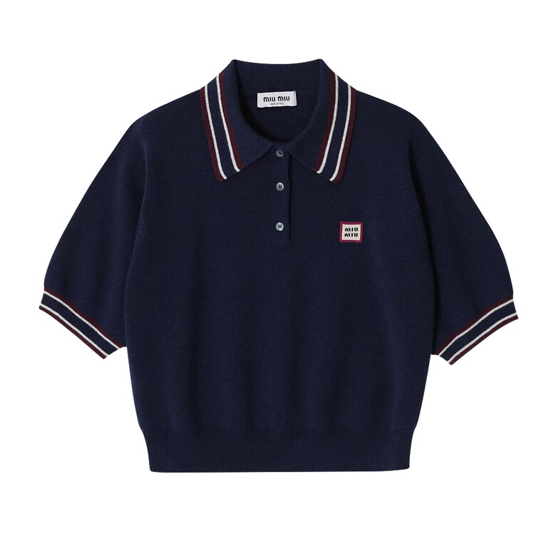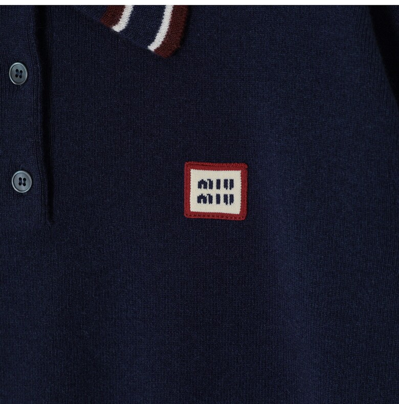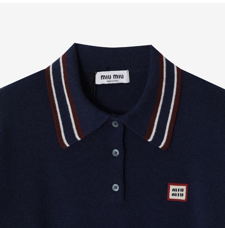 [명품] 미우미우 MMLA28 158Z F0124 로고 패치 폴로 반팔 여성 니트