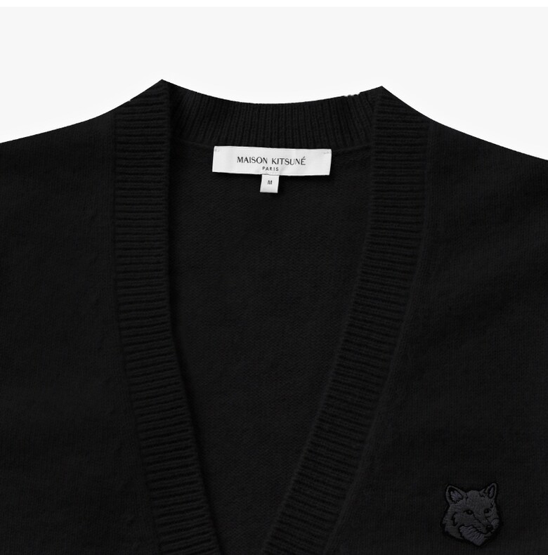 - #리본즈코리아 #NM00506KT1006P199 #[명품] #메종키츠네 #NM00506KT1006 #P199 #볼드 #폭스 #헤드 #패치 #브이넥 #남성 #가디건 #의류 #니트/가디건