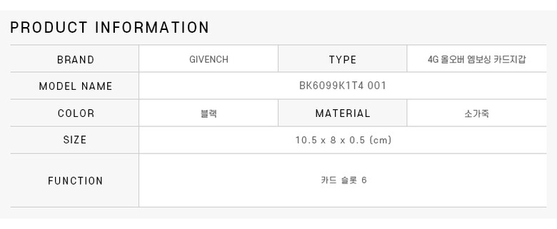[명품] 지방시 BK6099K1T4 001 로고 카드지갑