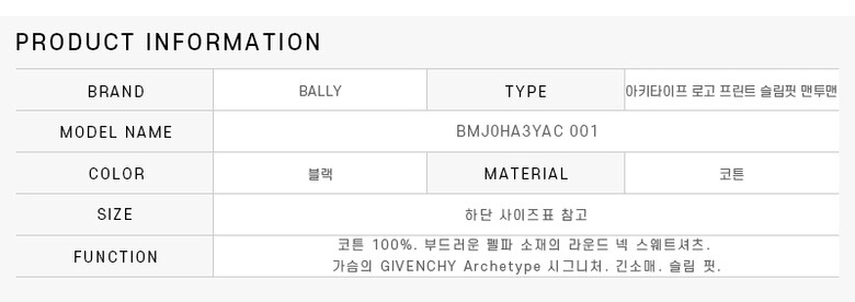 [명품] 지방시 BMJ0HA3YAC 001 아키타이프 로고 슬림핏 남성 맨투맨