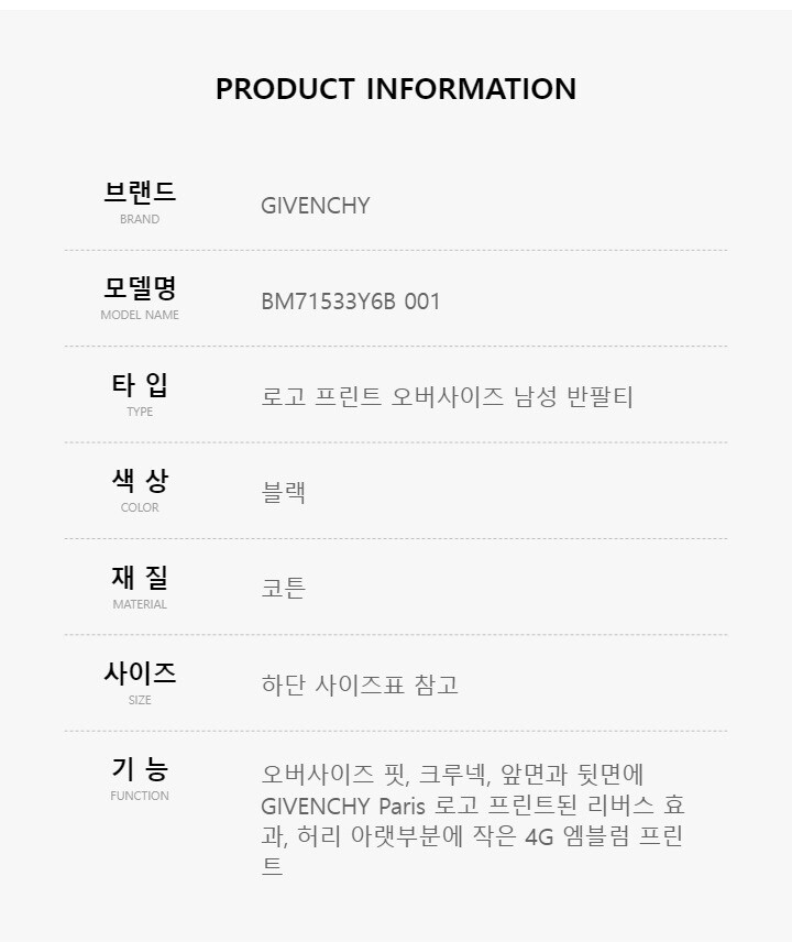 [명품] 지방시 BM71533Y6B 001 아키타이프 로고 오버 핏 남성 반팔티