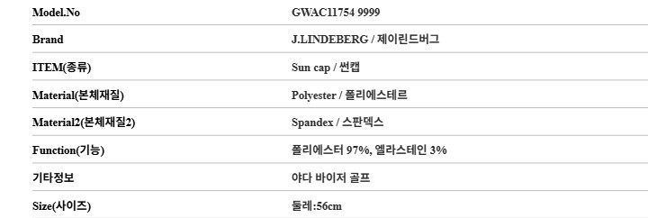 [명품] 제이린드버그 GWAC11754 9999 야다 바이저 골프 썬캡