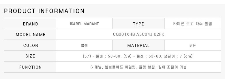 - #리본즈코리아 #CQ001XHBA3C04J02FK #[명품] #이자벨마랑 #CQ001XHB #A3C04J #02FK #TYRON #타이론 #로고 #자수 #볼캡 #여성 #패션잡화 #모자 #야구모자