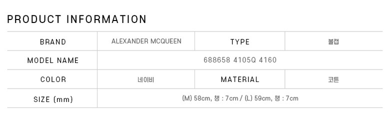 [명품] 알렉산더맥퀸 688658 4105Q 4160 로고 볼캡