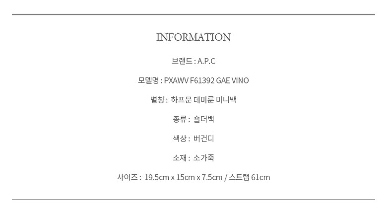 #리본즈코리아 #PXAWVF61392GAEVINO #[명품] #아페쎄 #PXAWV #F61392 #GAE #VINO #DEMI #LUNE #데미룬 #하프문 #미니 #크로스백 #여성 #가방/핸드백 #크로스/메신저백