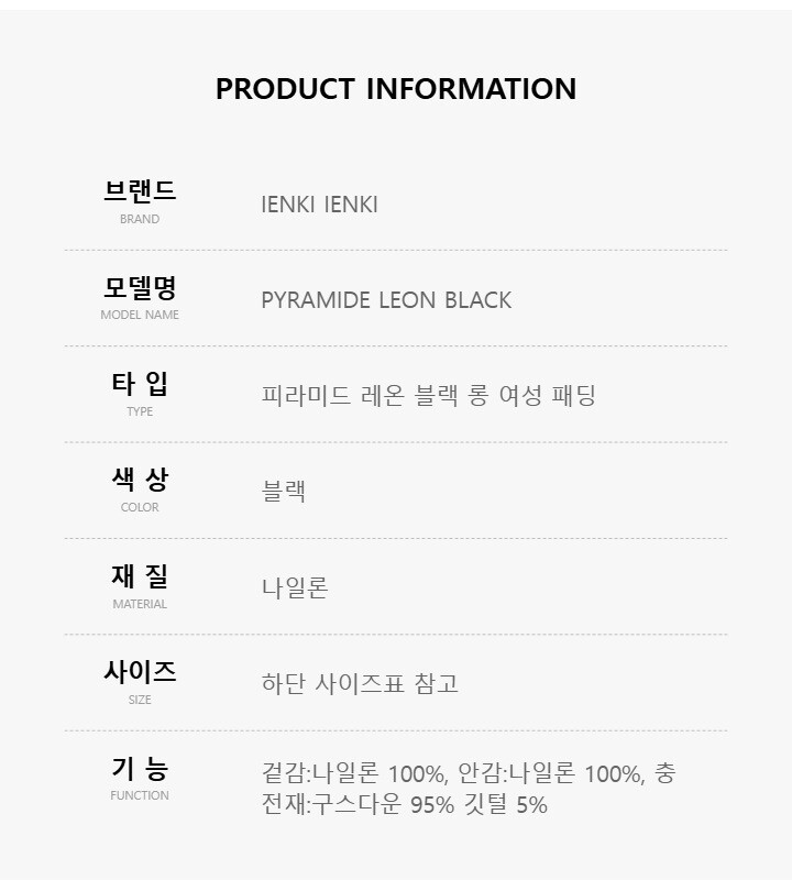 [명품] 옌키옌키 PYRAMIDE LEON BLACK 피라미드 레온 블랙 롱 여성 패딩