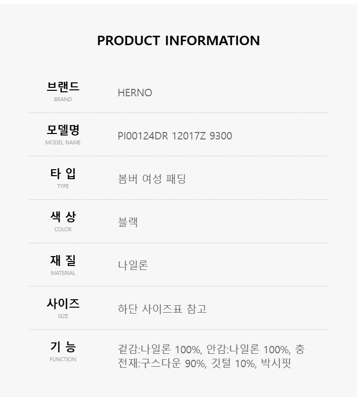 | 1. 제품 소재 (섬유의 조성 또는 혼용률을 백분율로 표시, 기능성인 경우 성적서 또는 허가서) | 상세페이지 참조 |