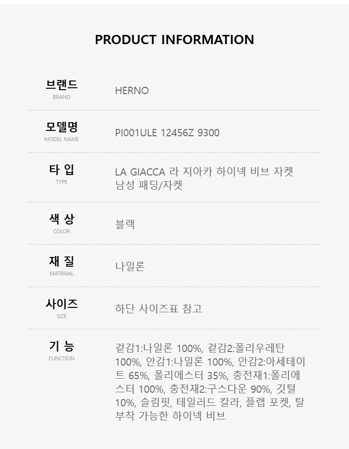 | 1. 제품 소재 (섬유의 조성 또는 혼용률을 백분율로 표시, 기능성인 경우 성적서 또는 허가서) | 상세페이지 참조 |