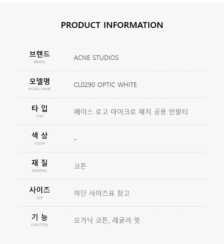 - #리본즈코리아 #CL0290OPTICWHITE #[명품] #아크네스튜디오 #CL0290 #OPTIC #WHITE #183 #페이스 #로고 #패치 #공용 #반팔티 #남성 #의류 #상의 #티셔츠