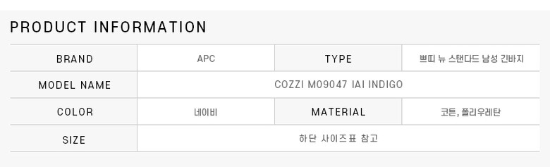 [명품] 아페쎄 COZZI M09047 IAI INDIGO 쁘띠 뉴 스탠다드 생지 데님 남성 긴바지