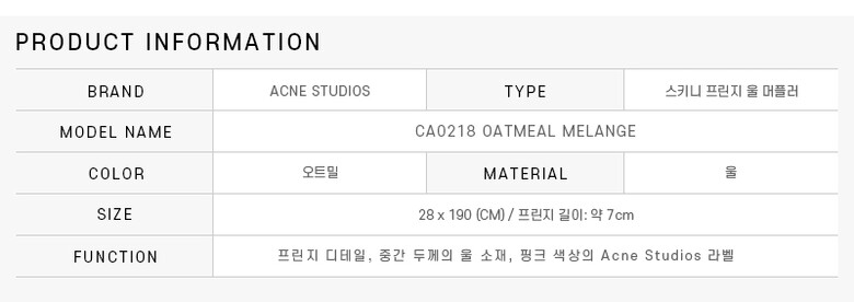 - #리본즈코리아 #CA0218OATMEALMELANGE #[명품] #아크네스튜디오 #CA0218 #OATMEAL #MELANGE #633 #스키니 #프린지 #머플러 #여성 #패션잡화 #스카프/머플러