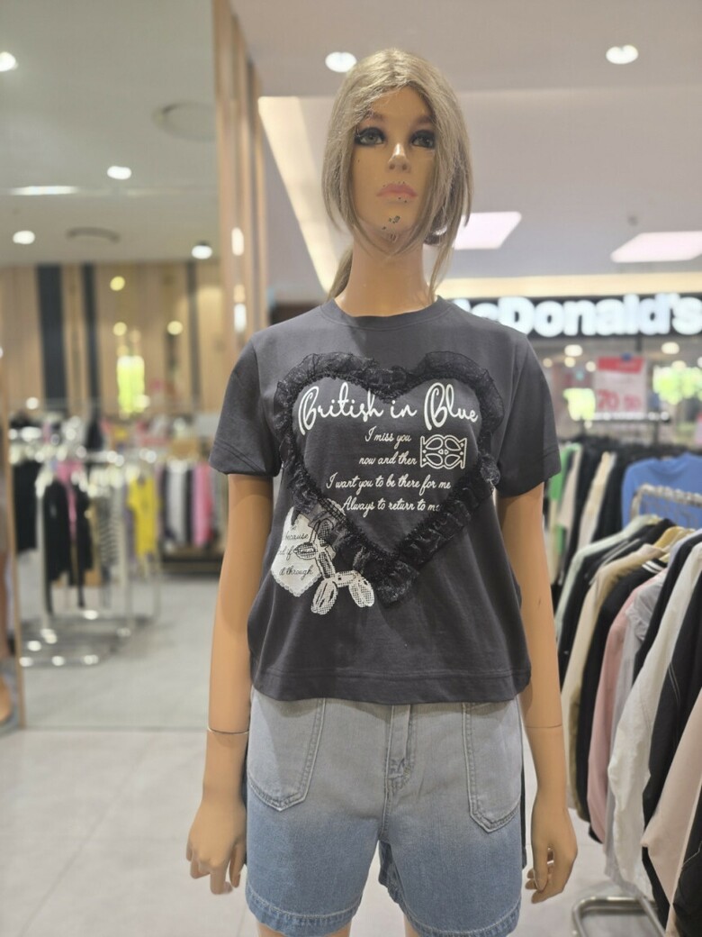 하트 러플 그래픽 반팔 티셔츠 ER2OTH-67