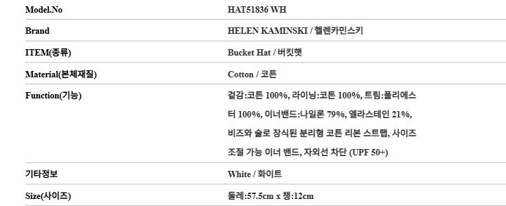 [명품] 헬렌카민스키 HAT51836 WH 메종 화이트 버킷햇